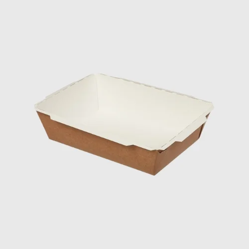 - Materials: Recycled Kraft Paper base, PET or compostable clear lid, water-based inks.