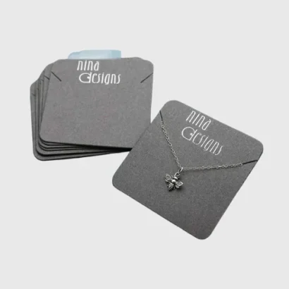 Our necklace cards combine functionality with aesthetic appeal, offering a reliable platform to display necklaces in a retail environment. The cards are crafted from sturdy cardstock or recycled paper, capable of holding necklaces securely without bending or damage. Compared to loose or generic displays, custom necklace cards provide enhanced consumer engagement with vivid colors, logos, and design elements printed using advanced techniques such as CMYK printing, foil stamping, embossing, and spot UV treatments. These customization options make your brand visible, memorable, and differentiated on crowded shelves.